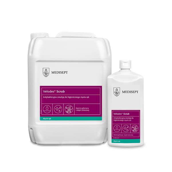 Zastosowanie: Velodes® Scrub to delikatna emulsja do mycia rąk i całego ciała. Nie zawiera barwników ani kompozycji zapachowej. Idealna dla lekarzy, stomatologów, pielęgniarek i osób z wrażliwą skórą, często myjących ręce. Neutralne dla skóry pH oraz zawartość gliceryny i pochodnej olejku kokosowego pozwala na codzienne mycie rąk nie powodując podrażnień. Emulsja może być stosowana w przemyśle spożywczym, instytucjach służby zdrowia, szkołach, przedszkolach oraz restauracjach.